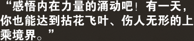 道士们的内在蕴藏着一股无法估量的力量。多年来对精神力的修炼,令他们仿佛天生就与内功心法有某种契合和协调。一旦他们学会如何将连绵不断的释放内力,道士的强大绝对会让你刮目相看、惊叹不已。